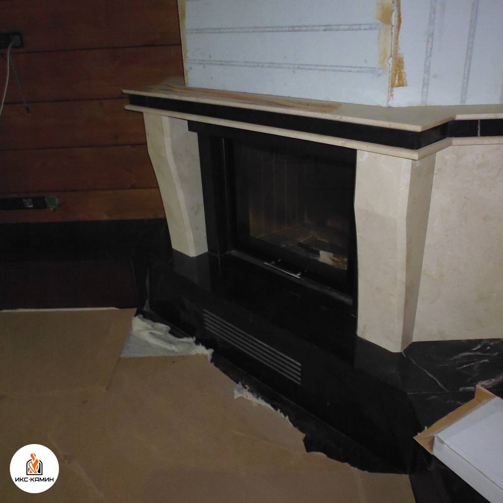 Применяемые материалы мрамор Неро Маркино + мрамор Крема Нова