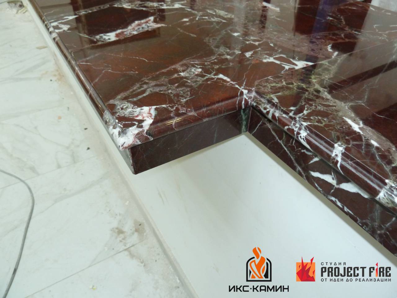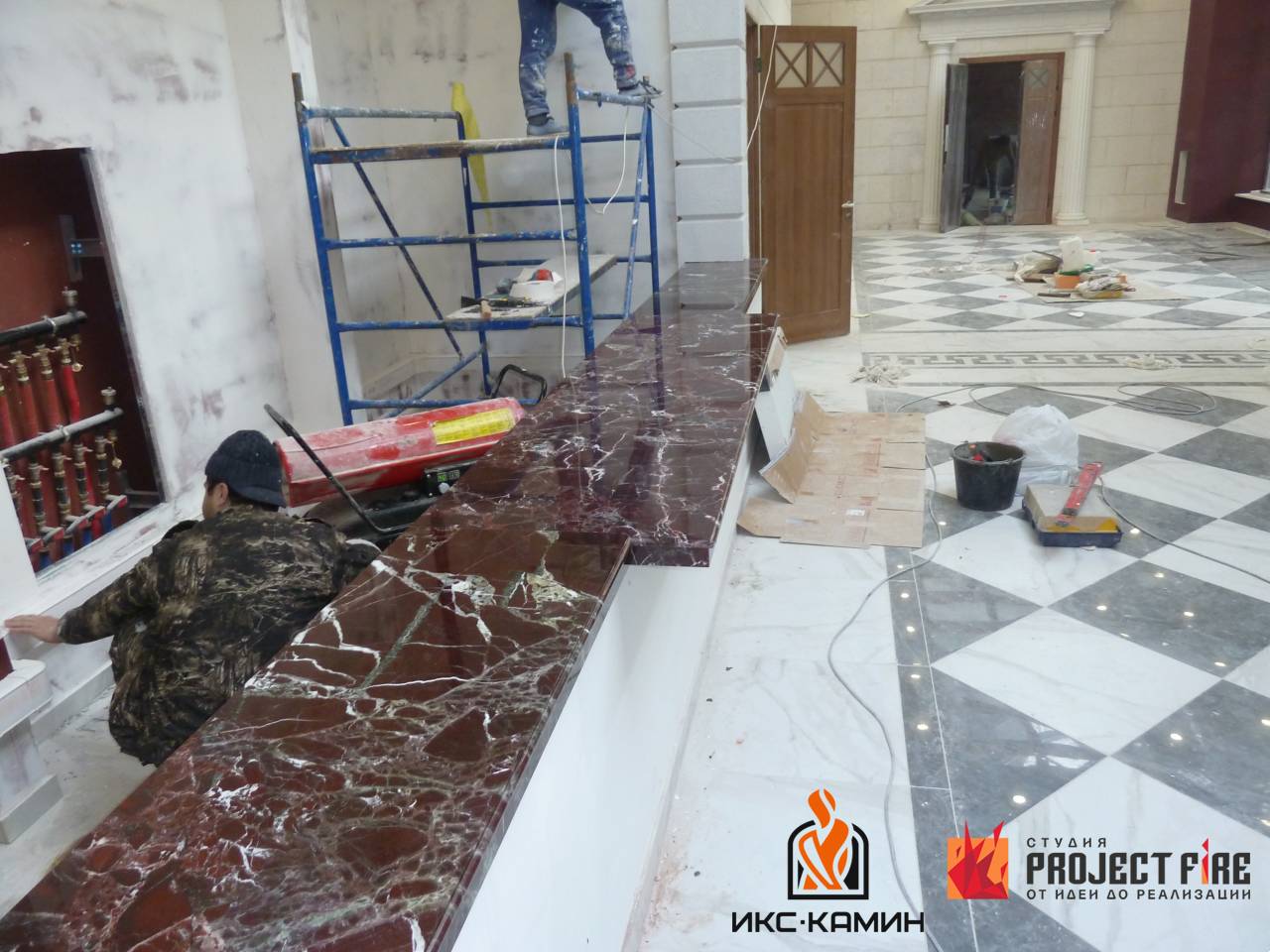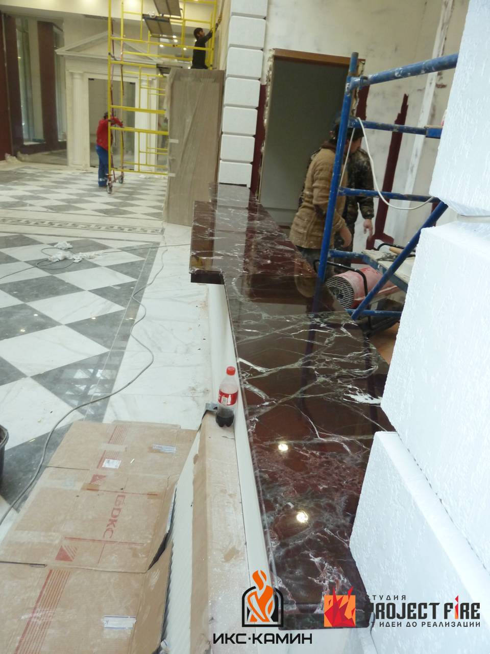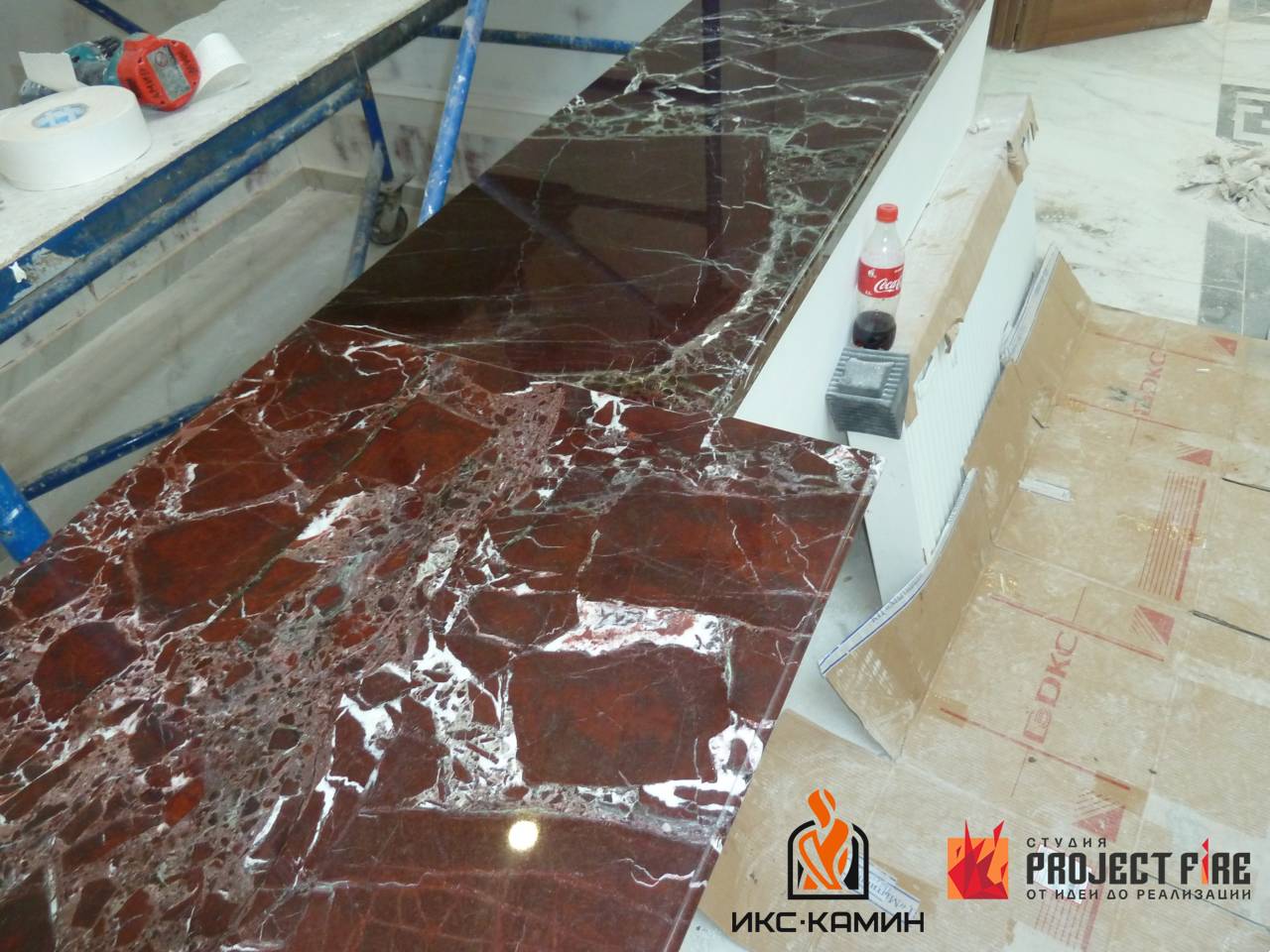 Изготовление и монтаж столешницы из мрамора на ресепшн ЖК Донской Олимп