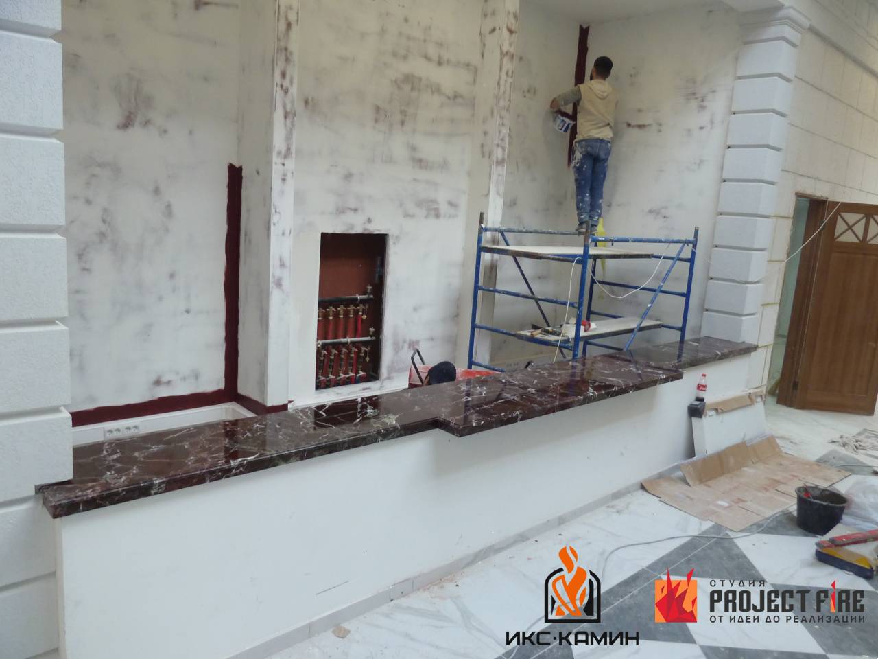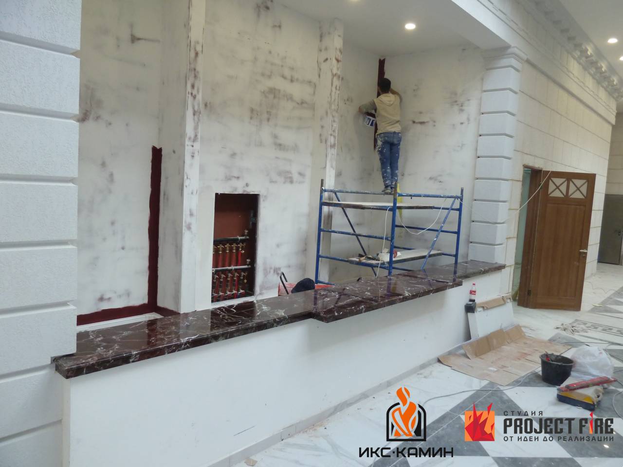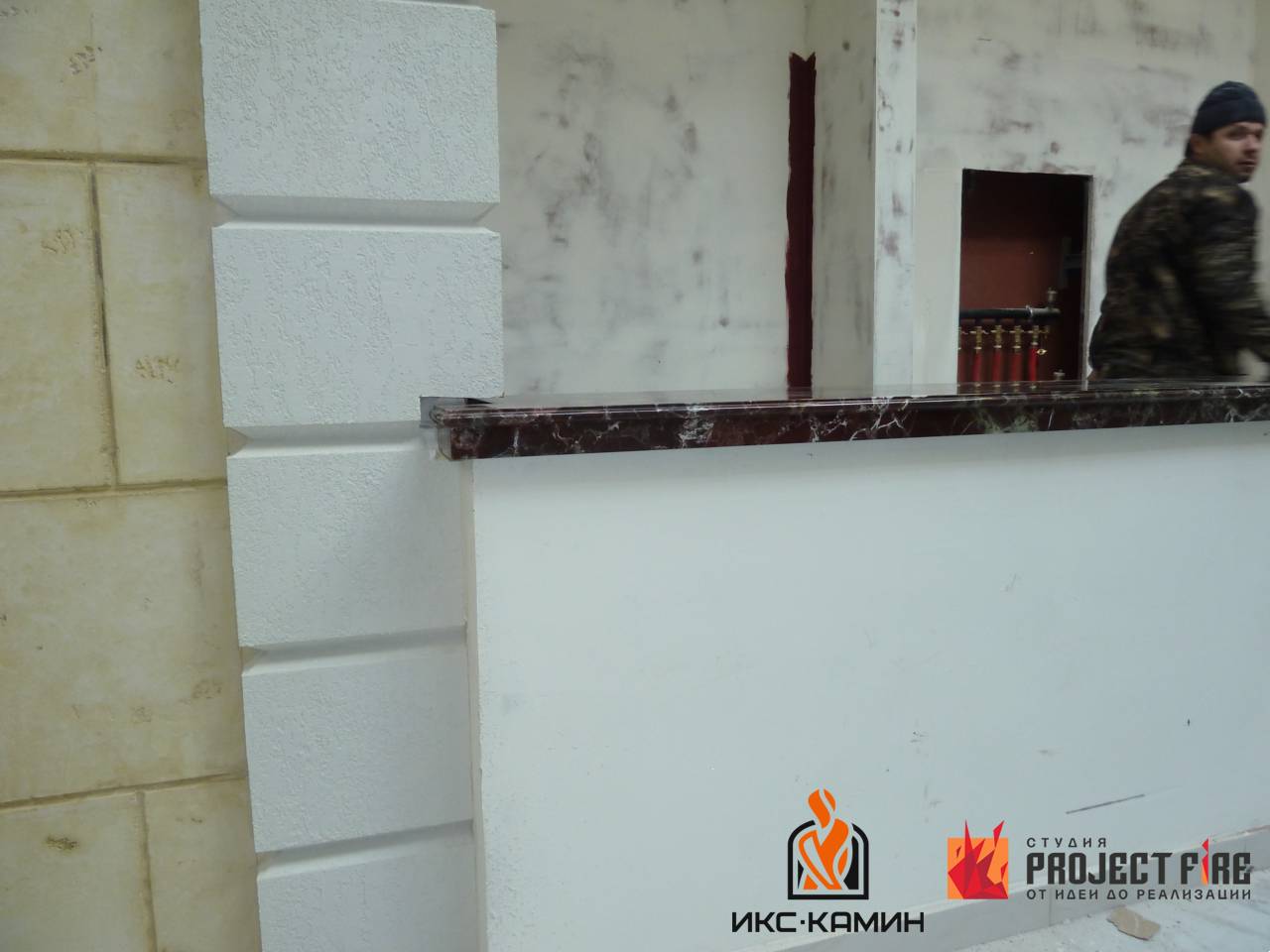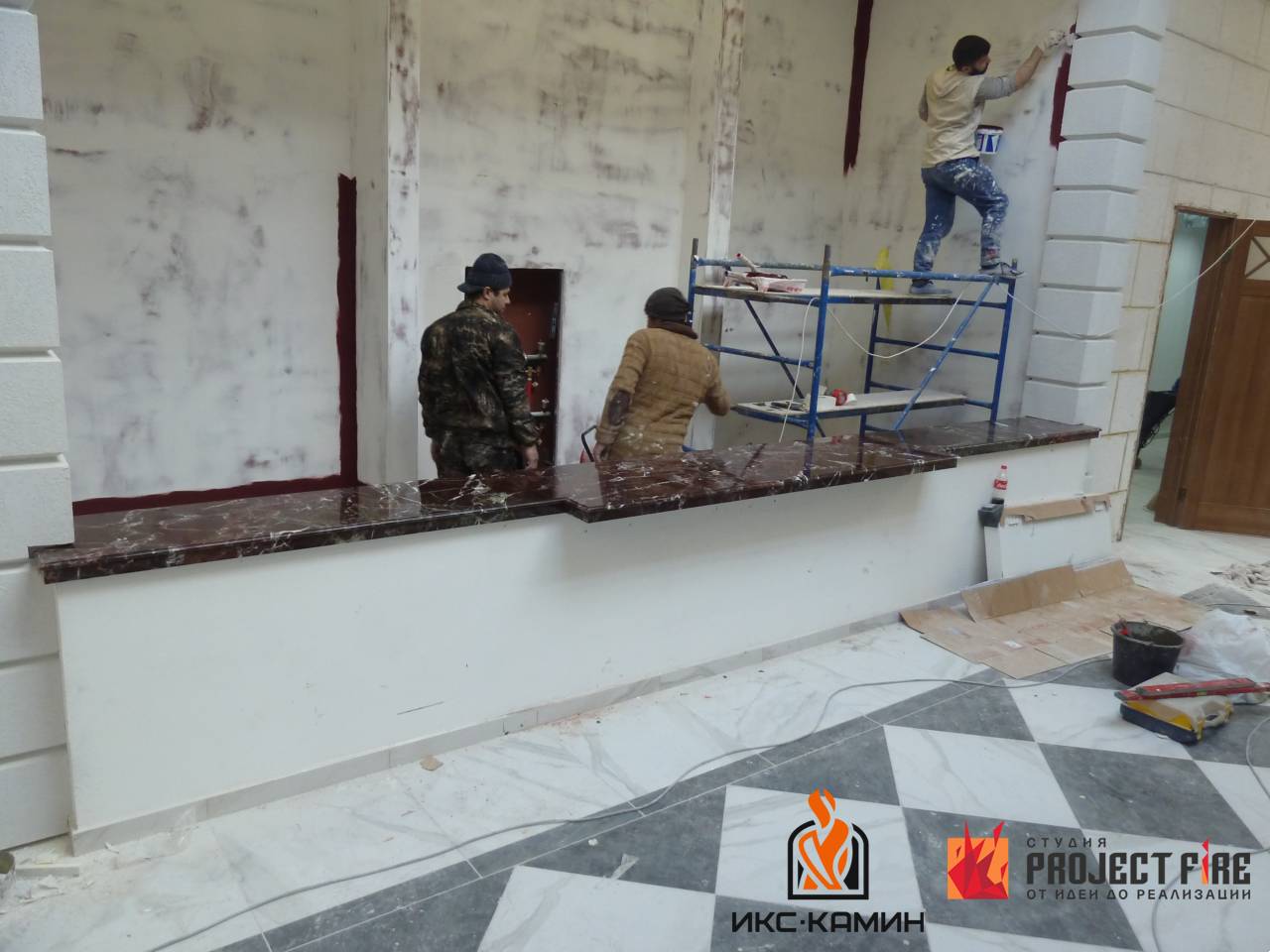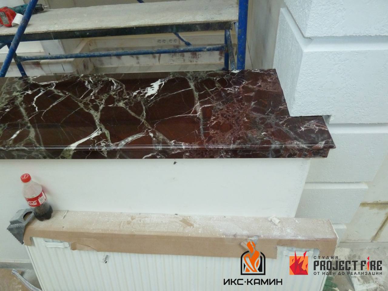 Изготовление и монтаж столешницы из мрамора на ресепшн ЖК Донской Олимп