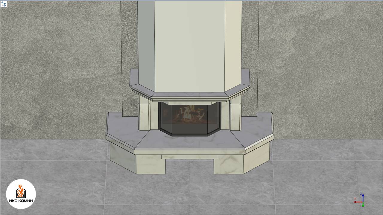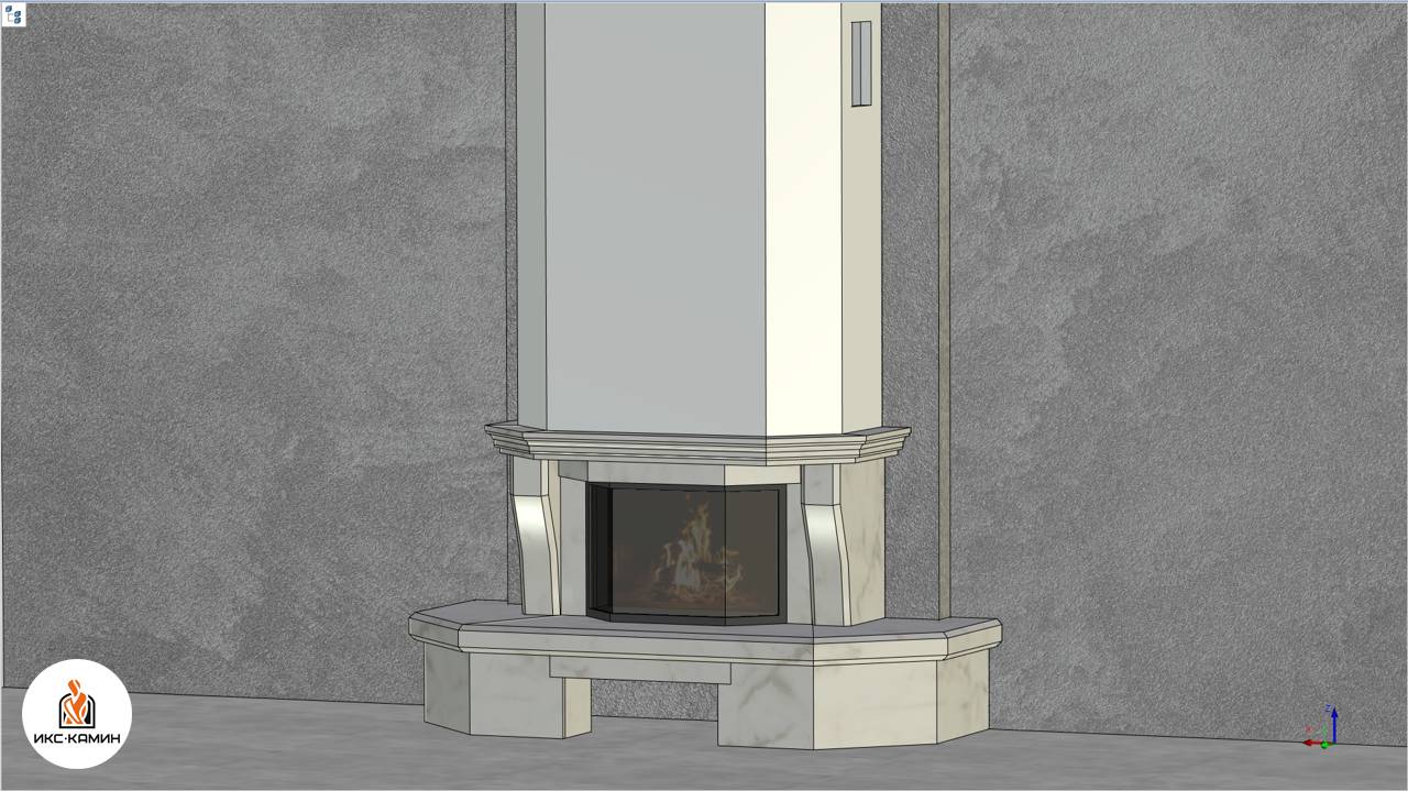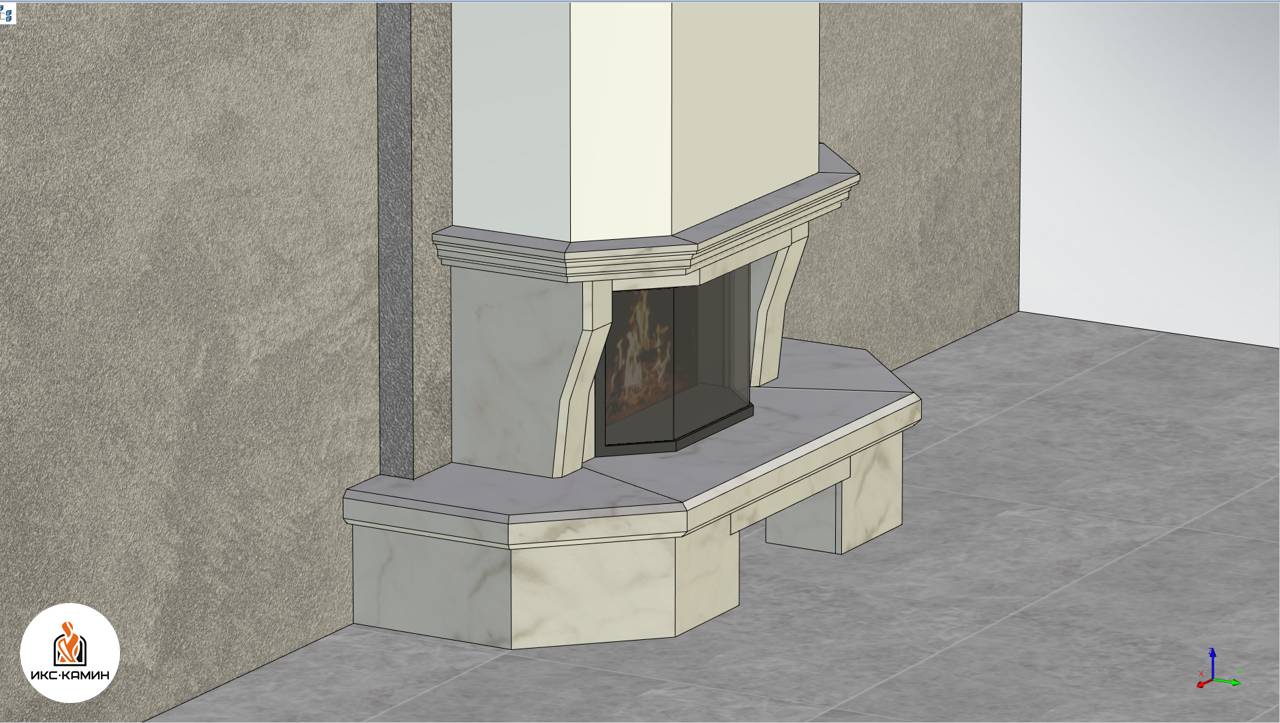 Проект облицовки камина на базе эркерной топки. Возможно внесение корректировок под ваши параметры.