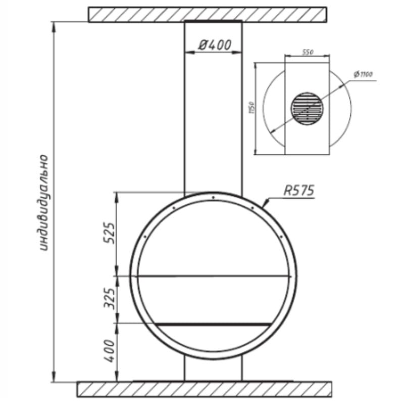 Диаметр дымохода, мм. 400